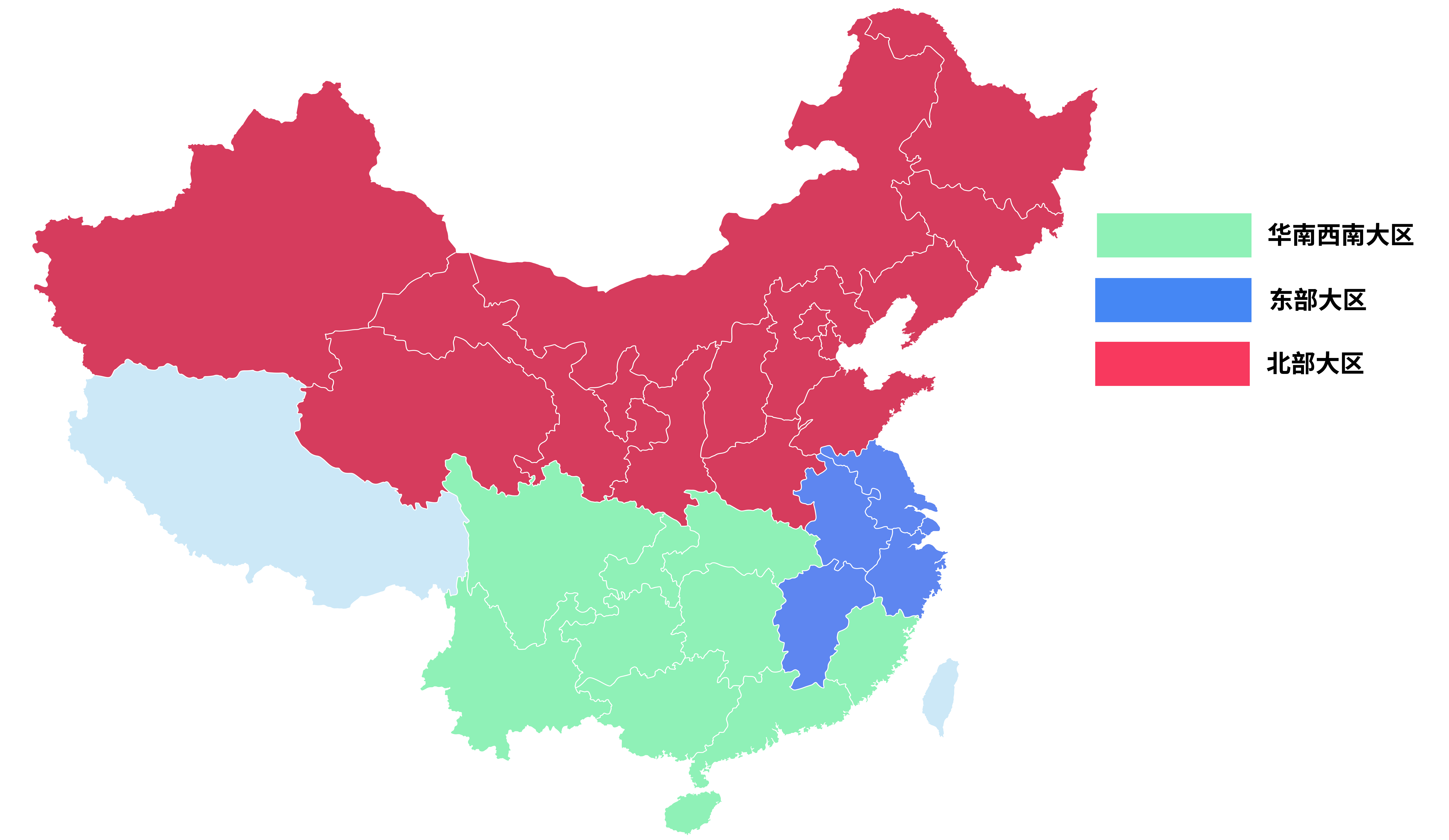 | 东部大区 | 浙江、江苏、上海、 安徽、江西 |